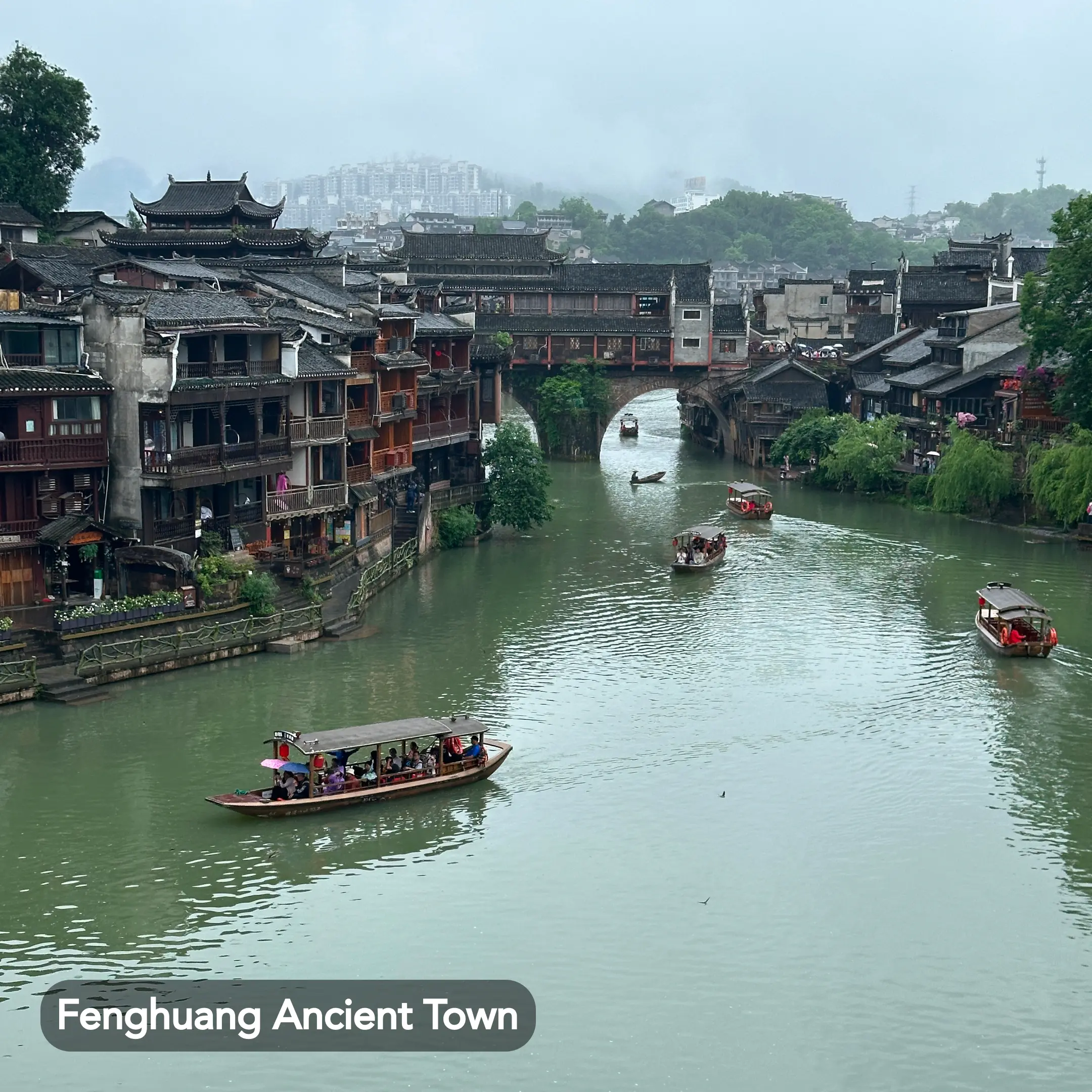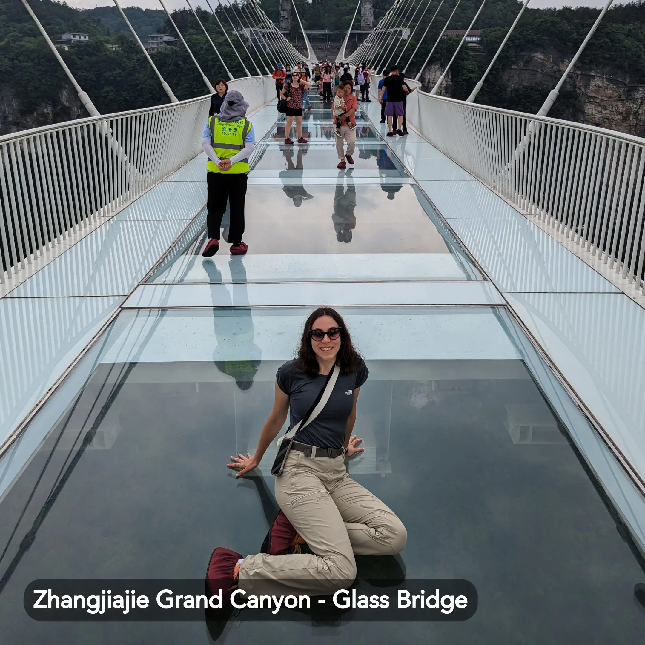 - May 18 / We took a series of buses to reach the Zhangjiajie Glass Bridge. I actually managed to cross it, and even looked down on the way back! It was a cool experience, but if youâre short on time, Iâd prioritize Zhangjiajie National Park over the bridge. After the visit, we returned to the hotel to grab our luggage and took a đ train to Fenghuang Old Town (Phoenix City).