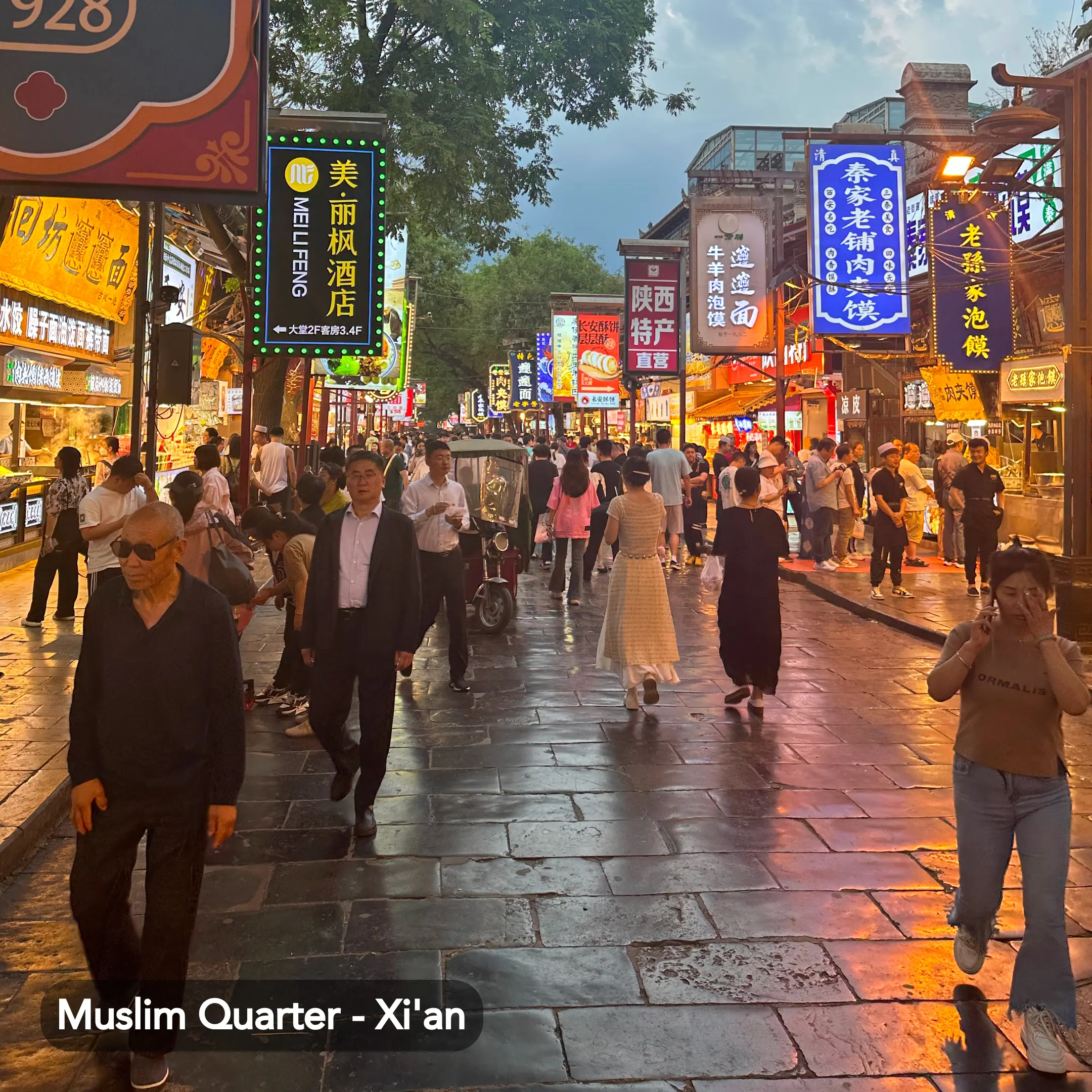 Hotel: Jinmao Hotel Xiâan Downtown -May 9 / đ Traveled to Xiâan (2:00 PM â 6:30 PM). That evening, we saw the Tang Dynasty show and explored the lively Muslim Quarter. -May 10 / We visited the Terracotta Warriors with this private tour. Later, we walked around the city center and visited the Bell Tower and Muslim Quarter again. We didnât have time for a bike ride along the ancient city wall, but it looked like a cool option!